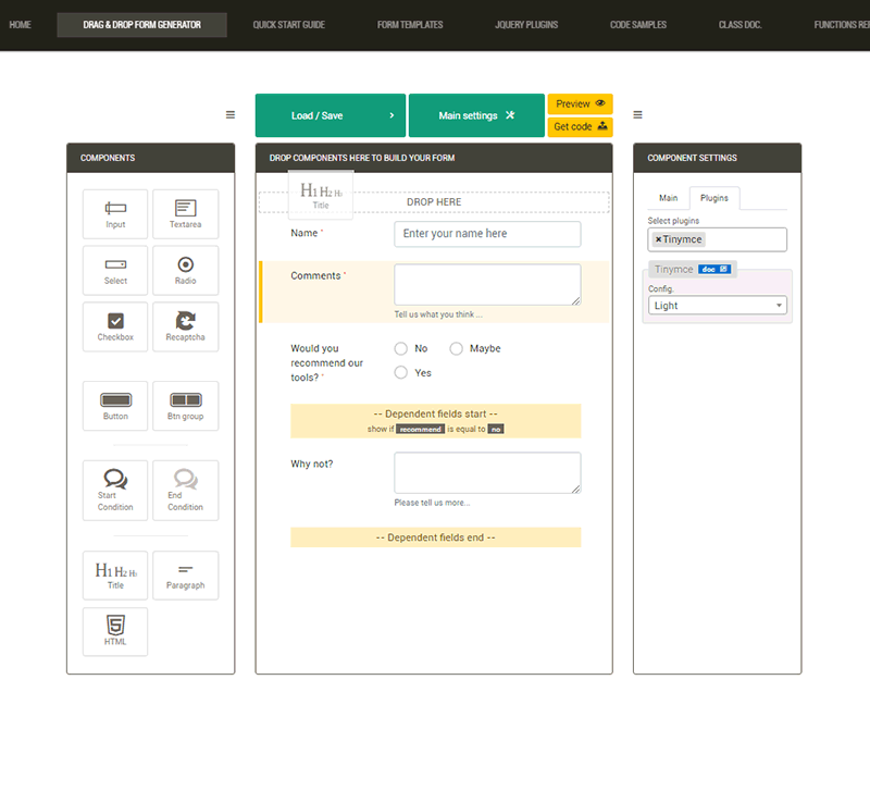 Create and configure your PHP forms by simple drag and drop.